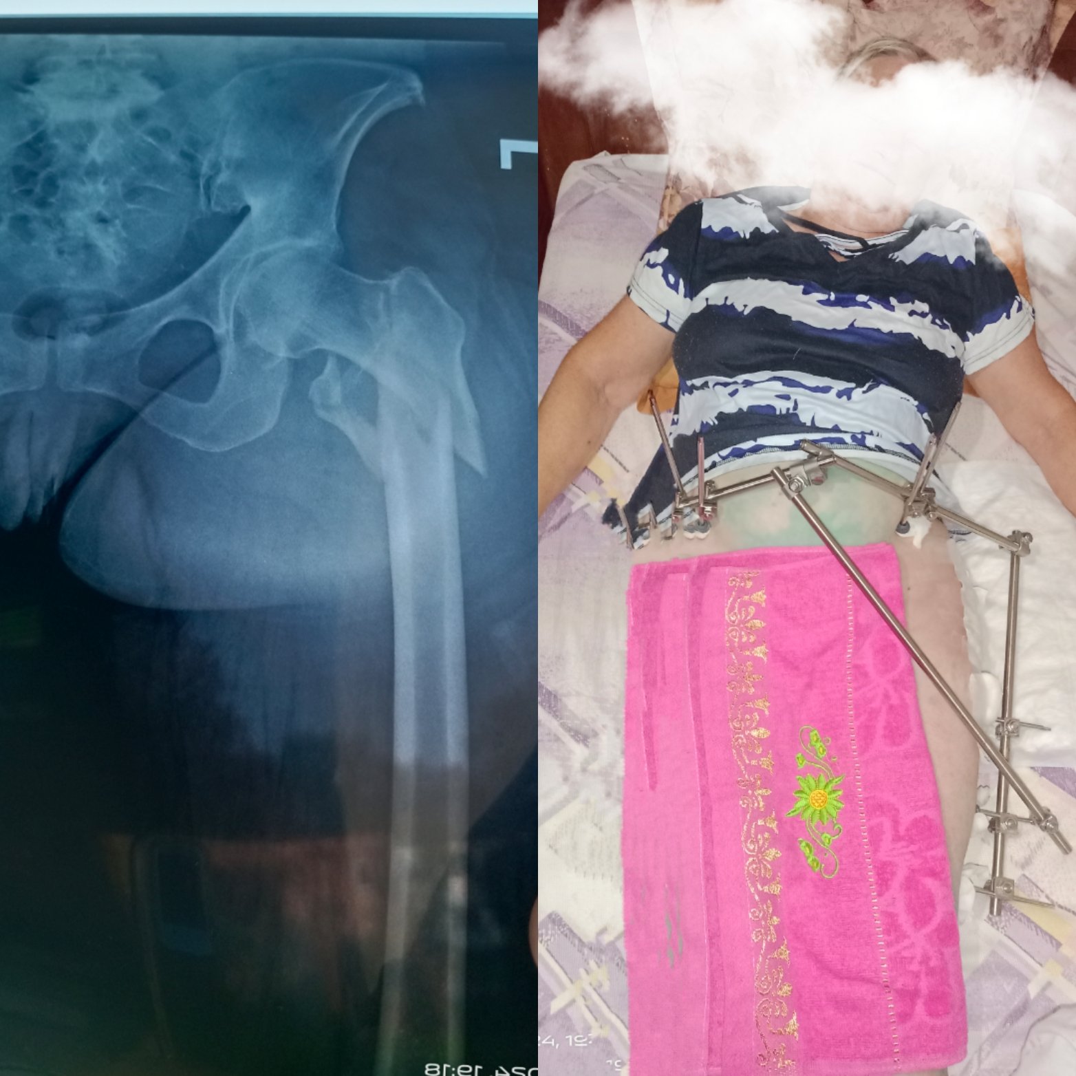 Операції проведена з приводу незрощеного перелому кісток гомілки, септичної нестабільності металофіксаторів. Первинно пацієнтка оперована в районній лікарні.