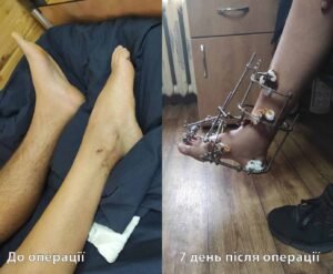 Видалено пластину та проведено позавогнищевий остеосинтез апаратом Ілізарова. На другий день після операції пацієнтка ходить з дозованим навантаженням.