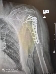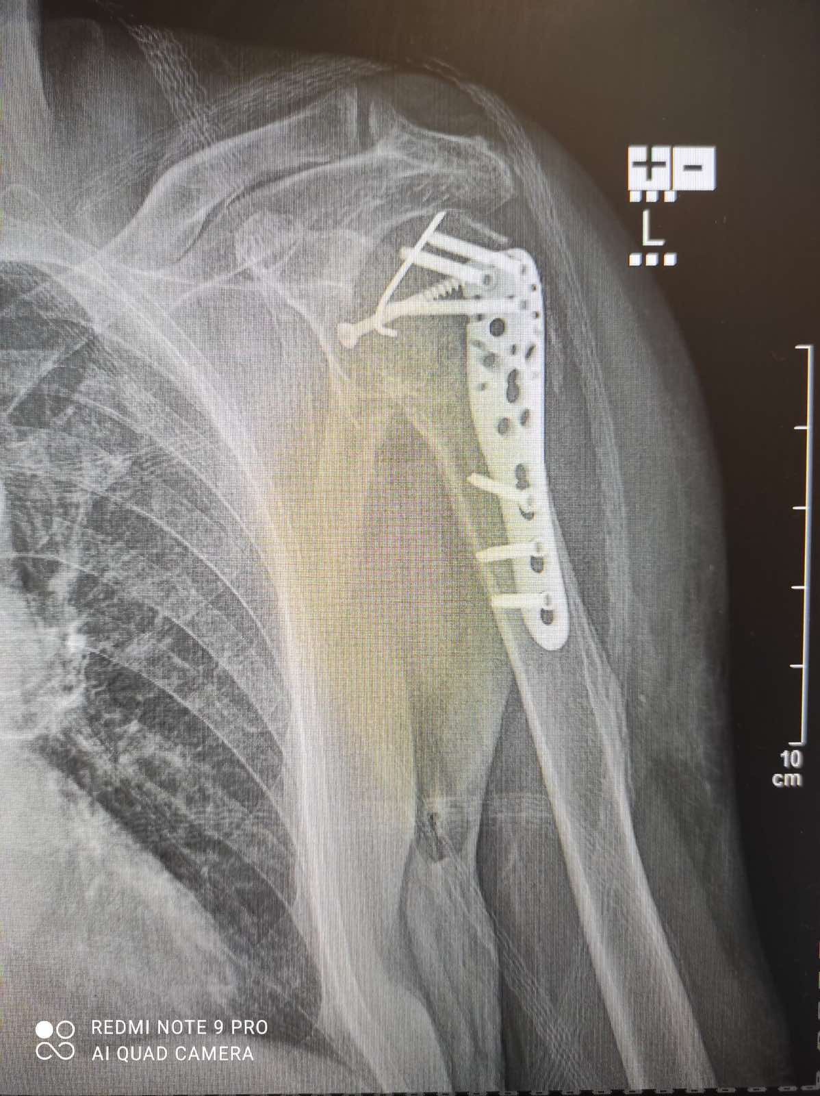 Коли лікарі діагностували скручений перелом плечевої кістки, то самі похапались за голову! Це була складна операція, що передбачала встановлення спецпластини. В ході самої операції були непередбачувані обставини ( кістка виявилась сильно роздроблена), котрі вимагали оперативно приймати рішення. І я радий, що моїм лікарем був професіонал, з величезним досвідом (в тому числі і на передовій).